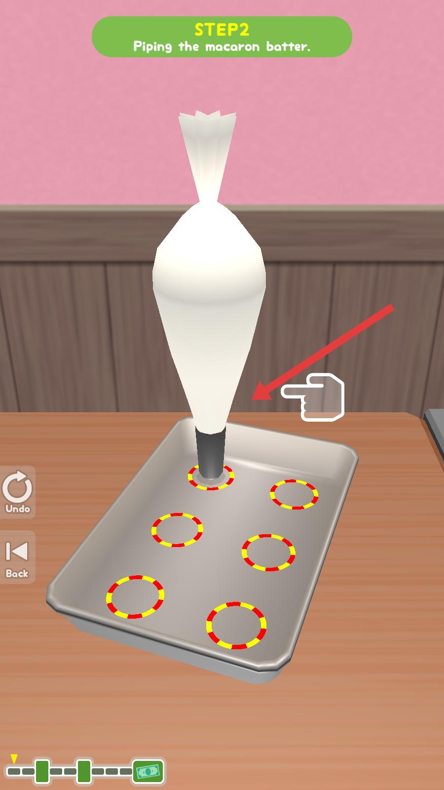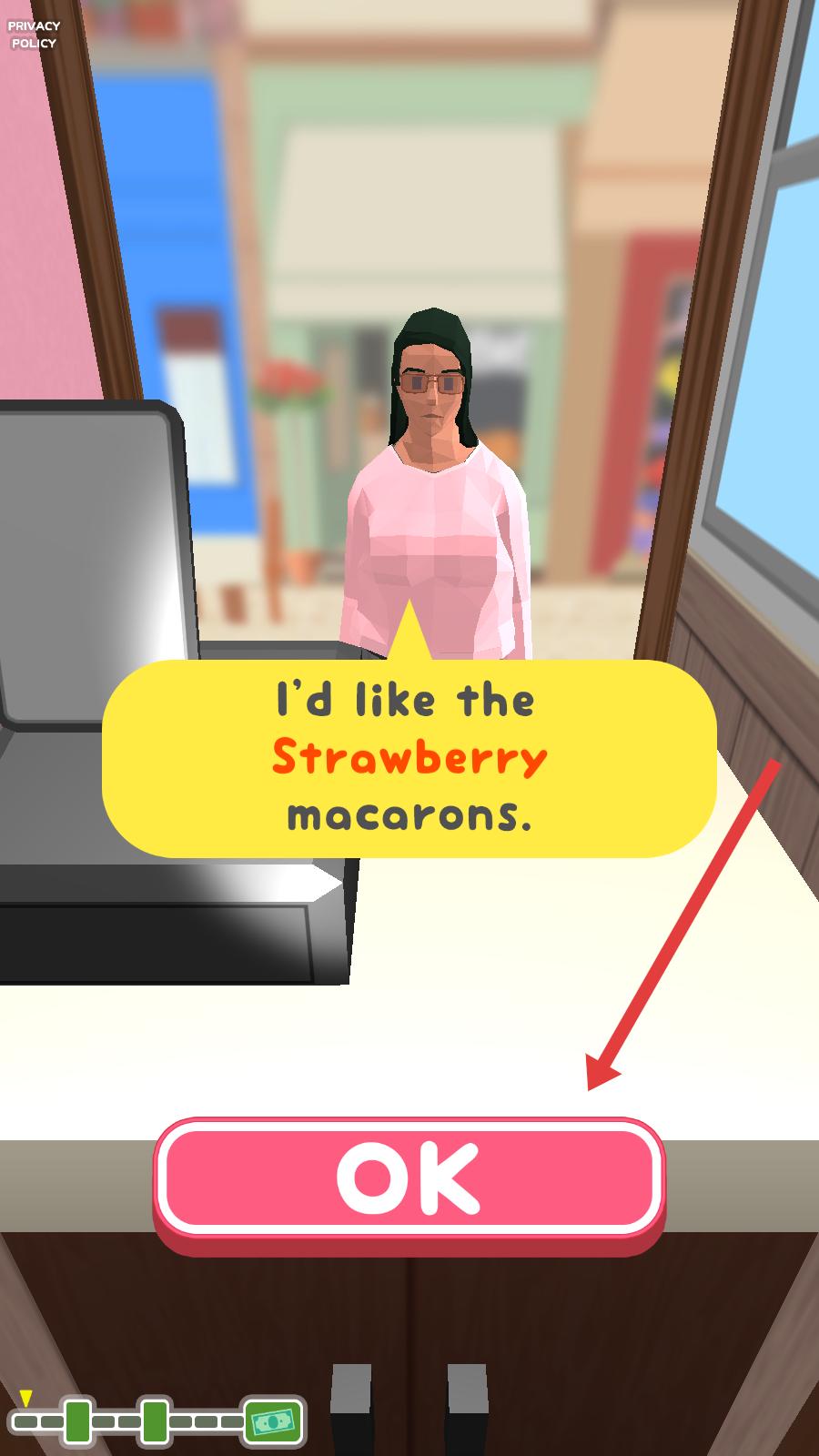 1、顧客表示想要草莓馬卡龍,點擊粉色OK按鈕,確認顧客的訂單,準備開始制作草莓馬卡龍。