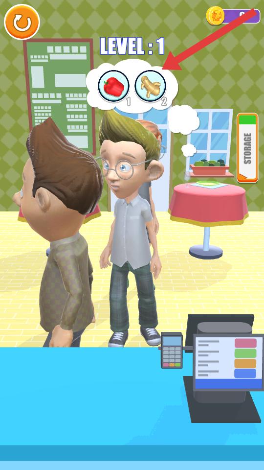 1、查看顧客頭頂氣泡里的需求,明確需要準備紅椒和香蕉這兩種食材,以便后續選取加工。