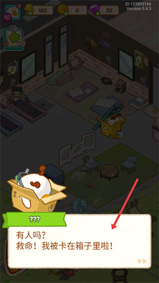 1、被卡在箱子里的角色求救,開啟建設肥鵝健身房的故事,進入游戲的劇情環節。