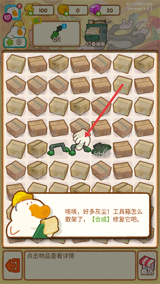 4、合成修復工具箱時,可將部件合成,獲得箱蓋等物品,逐步完成工具箱的修復,推進游戲進程。