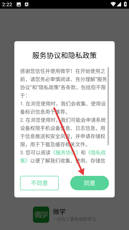 1、首次打開APP會彈出用戶協議及隱私政策界面,需仔細閱讀后點擊同意才能繼續使用APP,這一步是為了確保用戶了解并同意平臺使用個人信息的規則。