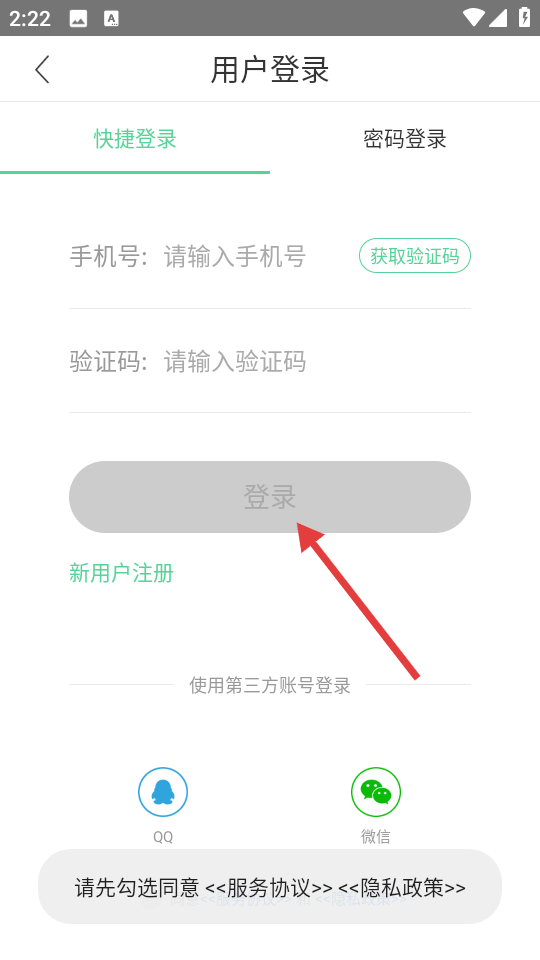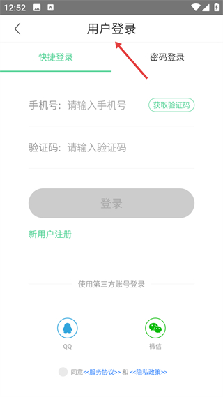 1、進入平臺先到用戶登錄頁,可選快捷登錄或密碼登錄,快捷登錄需輸入手機號獲取驗證碼,也可通過QQ、微信第三方賬號登錄,需勾選協議完成登錄。