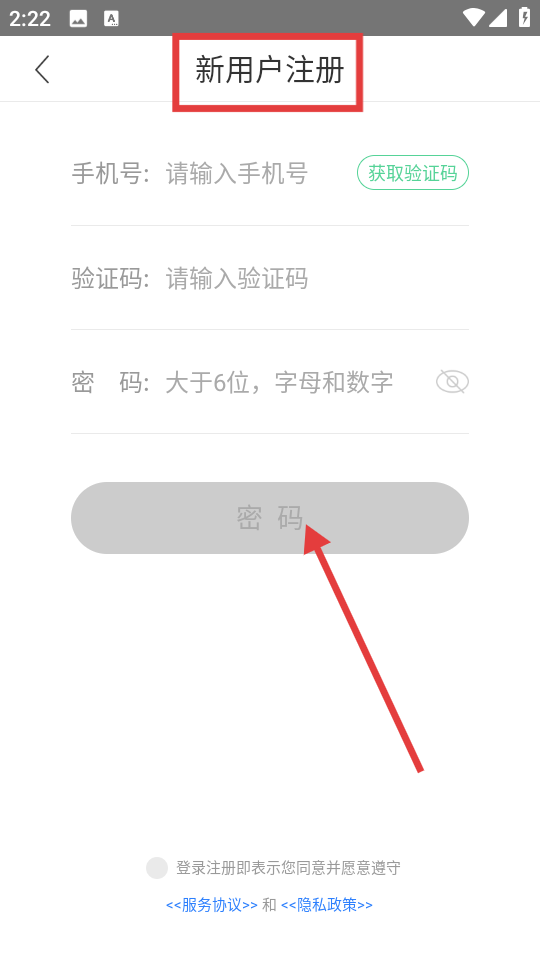 3、在APP的新用戶注冊界面,采用手機號注冊方式,需依次輸入手機號碼、獲取并填入驗證碼和填寫內容,點擊立即注冊按鈕即可完成注冊流程。