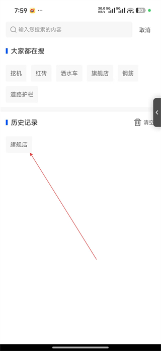 2、在搜索頁面查看大家都在搜的內容及歷史記錄,選擇旗艦店等關鍵詞,點擊后進入對應的搜索結果頁面。