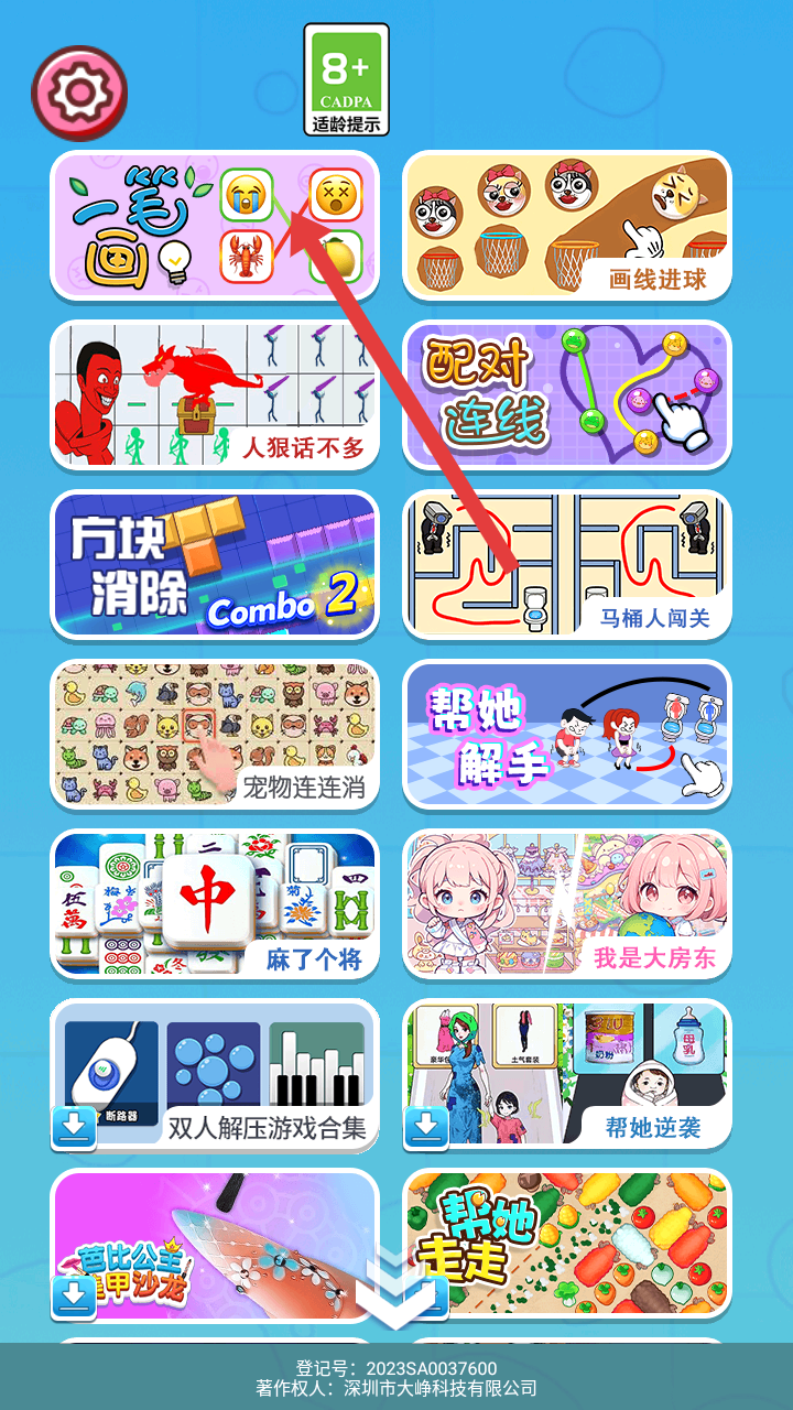 1、進入游戲,眾多游戲選擇,選項中找到一筆畫,點擊它就能開啟游戲連一連。
