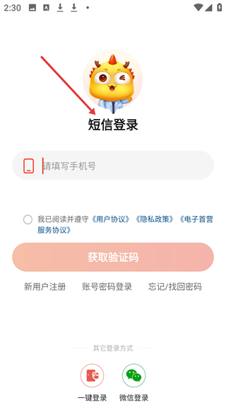 1、 短信登錄界面可填手機號,勾選協議后獲取驗證碼登錄,還有新用戶注冊、賬號密碼登錄等多種方式。