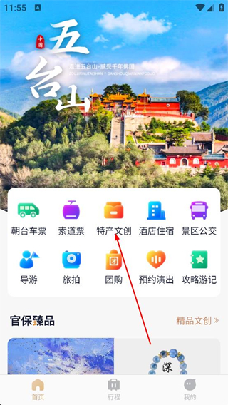 2、登錄后進入首頁,找到特產文創選項,點擊該選項進入文創商城頁面,查看展示的各類文創商品。