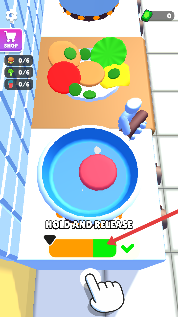 2、廚房烹飪時,按照提示HoldandRelease操作,把控好烹飪節奏,確保食物制作成功。