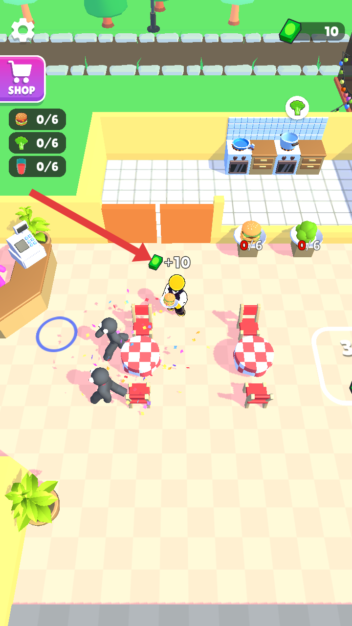 4、成功為顧客提供餐食后,會獲得相應的綠色貨幣獎勵,積累資金,以便更好地經營餐廳。