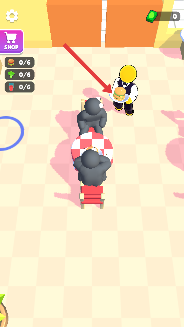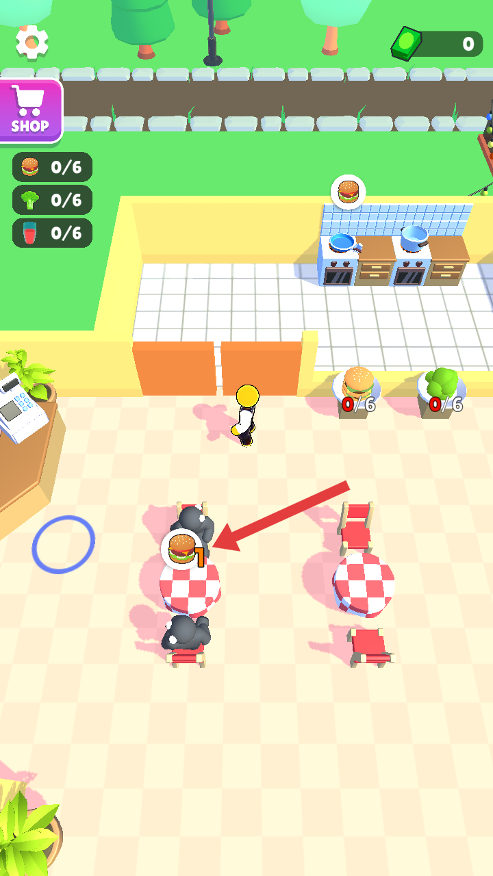 1、進入游戲餐廳場景中,觀察顧客需求,比如看到顧客需要漢堡,就前往廚房準備制作。
