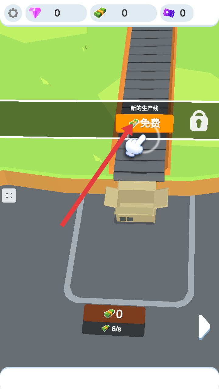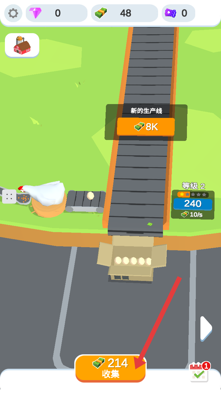 3、新母雞加入后,會開始生產,生產出的物品通過傳送帶運輸,點擊收集按鈕,能獲取相應收益,積累財富。