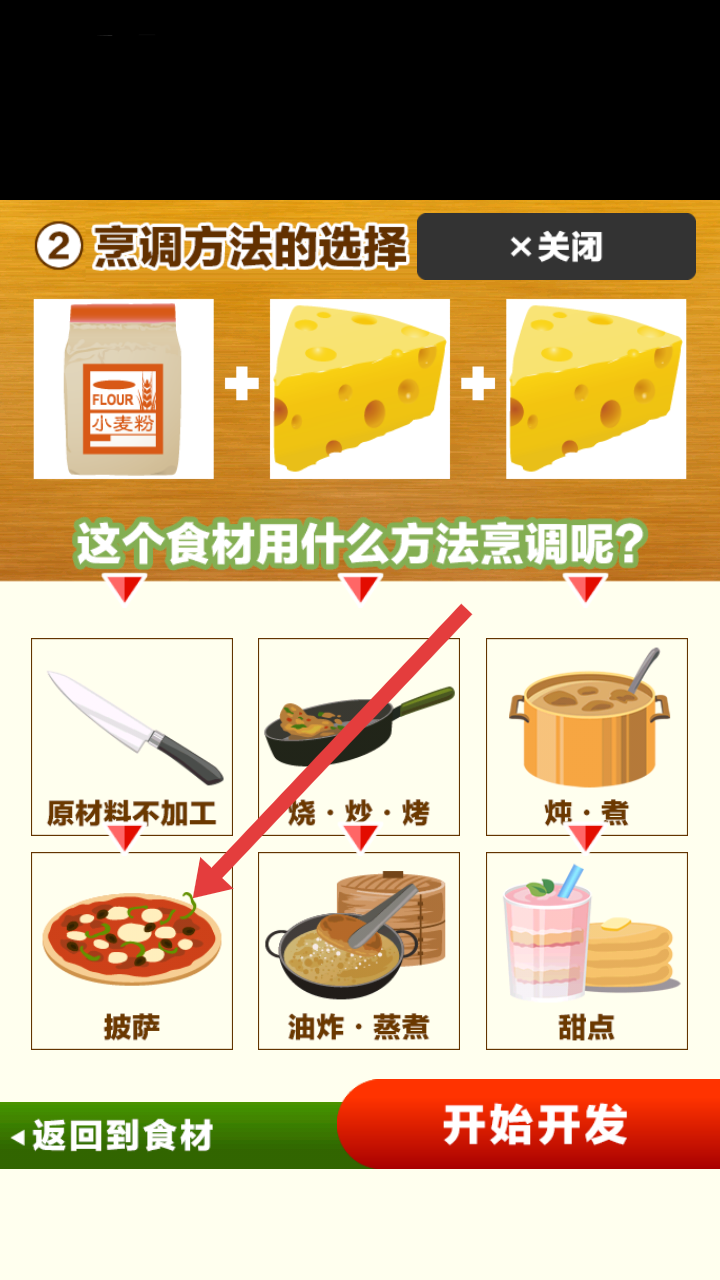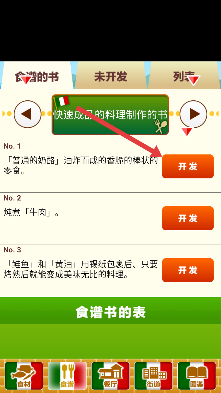 1、進入游戲食譜界面,能看到不同料理的開發選項,選擇想開發的料理,點擊對應的開發按鈕,開啟料理開發流程。