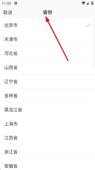 3. 進入省份選擇界面,可從北京市、天津市等省份列表中,選擇對應的所在省份,完成該信息的選擇后返回申請試用界面。