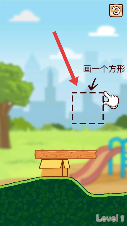 3、在游戲界面,根據畫一個方形的提示,用手指在虛線框位置畫出方形,以此來完成當前關卡的操作要求。