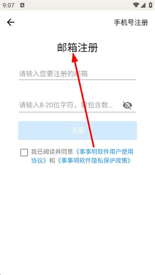 3、可切換至郵箱注冊頁面,輸入要注冊的郵箱并設置符合要求的密碼,勾選相關協議后點擊注冊,通過郵箱完成賬號的注冊流程。