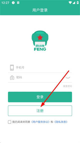 1、進入用戶登錄頁面,可輸入手機號和密碼登錄,也能點擊注冊創建新賬號,需先勾選同意用戶服務協議和隱私條款,還可選擇重置密碼。