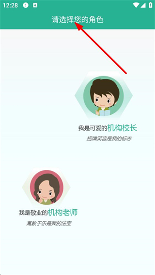 4、登錄成功后進入角色選擇頁面,可選擇機構校長或機構老師角色,不同角色對應不同功能權限,選擇后即可進入對應功能界面。