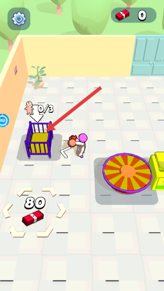 3、看到紫色嬰兒床,要把嬰兒安置到嬰兒床里,同時注意界面顯示的任務進度,逐步完成安置嬰兒的任務。