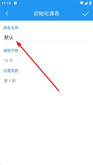 1、進入初始化課表頁面,可設置課表名稱為默認,課程節數為12節,設置周數為第1周,完成基礎配置后即可進入課表主界面。