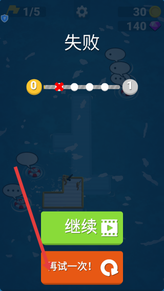 4、若挑戰失敗,會出現失敗界面,此時可點擊再試一次按鈕,重新開始挑戰,爭取順利通關。