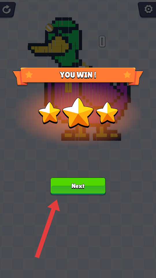 4、成功拼湊出圖案后,會顯示你贏了及三星評價,此時點擊綠色按鈕,即可進入下一關,繼續新的圖案拼湊挑戰。