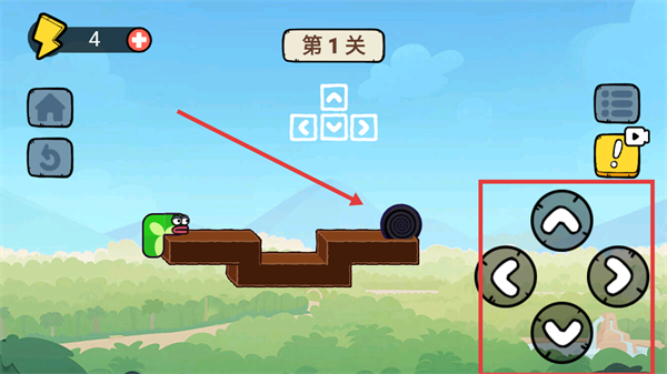 2、進入關卡后通過點擊屏幕右側的方向按鈕,操控蘋果蛇移動利用方向按鈕規劃路線,讓蘋果蛇朝著關卡中的蘋果移動。