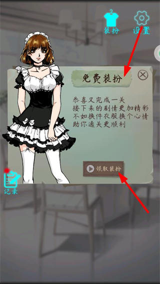 4、通關一關后會出現免費裝扮界面,點擊領取裝扮獲取新外觀,更換裝扮后可更順利地推進后續劇情。