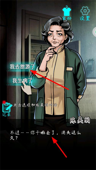 1、與陳美麗對話,選擇界面里的選項回應她的問題,通過對話互動推進當前的劇情發展。