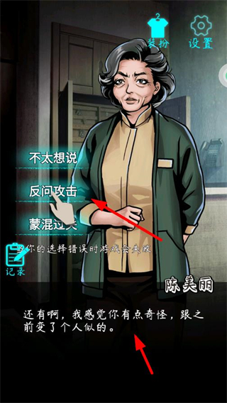 2、根據陳美麗的新問題,從選項里挑選合適的回應內容,注意選擇錯誤會導致游戲失敗,需謹慎選擇。