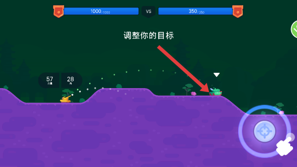 2、技能卡選中后,屏幕出現調整你的目標提示,移動瞄準標識對準敵方坦克,精準定位攻擊目標。