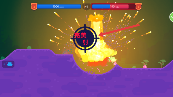3、瞄準后發射技能,若命中敵方會觸發爆炸特效,屏幕顯示完美射擊,同時敵方血量大幅減少。