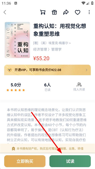 2、進入書籍詳情界面后,能查看書籍價格評分及內容介紹,可選擇立即購買獲取書籍,也可點擊試讀按鈕,先體驗書籍的部分內容。