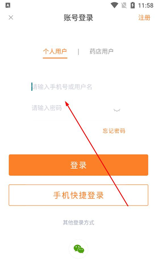 1、進入賬號登錄頁,在輸入框填寫手機號或用戶名,輸入對應密碼,確認信息后點擊登錄按鈕登錄。