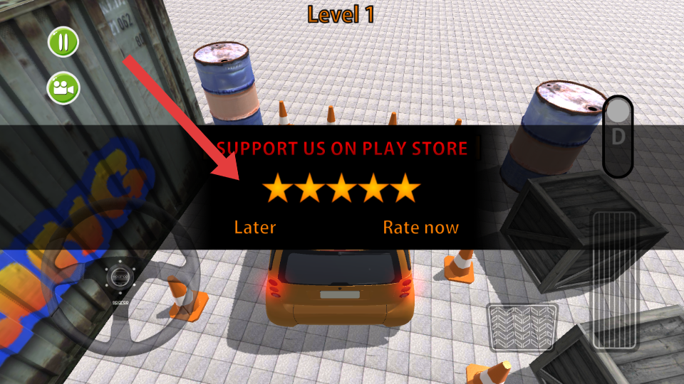 4、成功停車后,界面會彈出五顆星星以及請在商店支持我們,可選擇稍后評價,或立即評價。