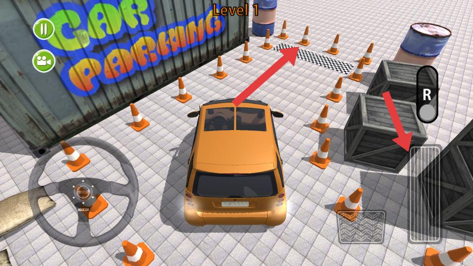 3、在游戲過程,繼續操控車輛,朝著帶有黑白格的目標停車區域行駛,注意避讓路錐等障礙物,精準將車停入指定位置。
