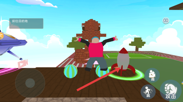 3、場景中會遇到如火箭等元素,靠近相關元素可以增加移速,推進游戲進程,完成指定任務。