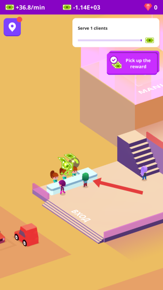 4、領取獎勵后,回到沙龍場景,能看到有客人來到沙龍,服務區域為客人提供美發等服務,獲取收益。