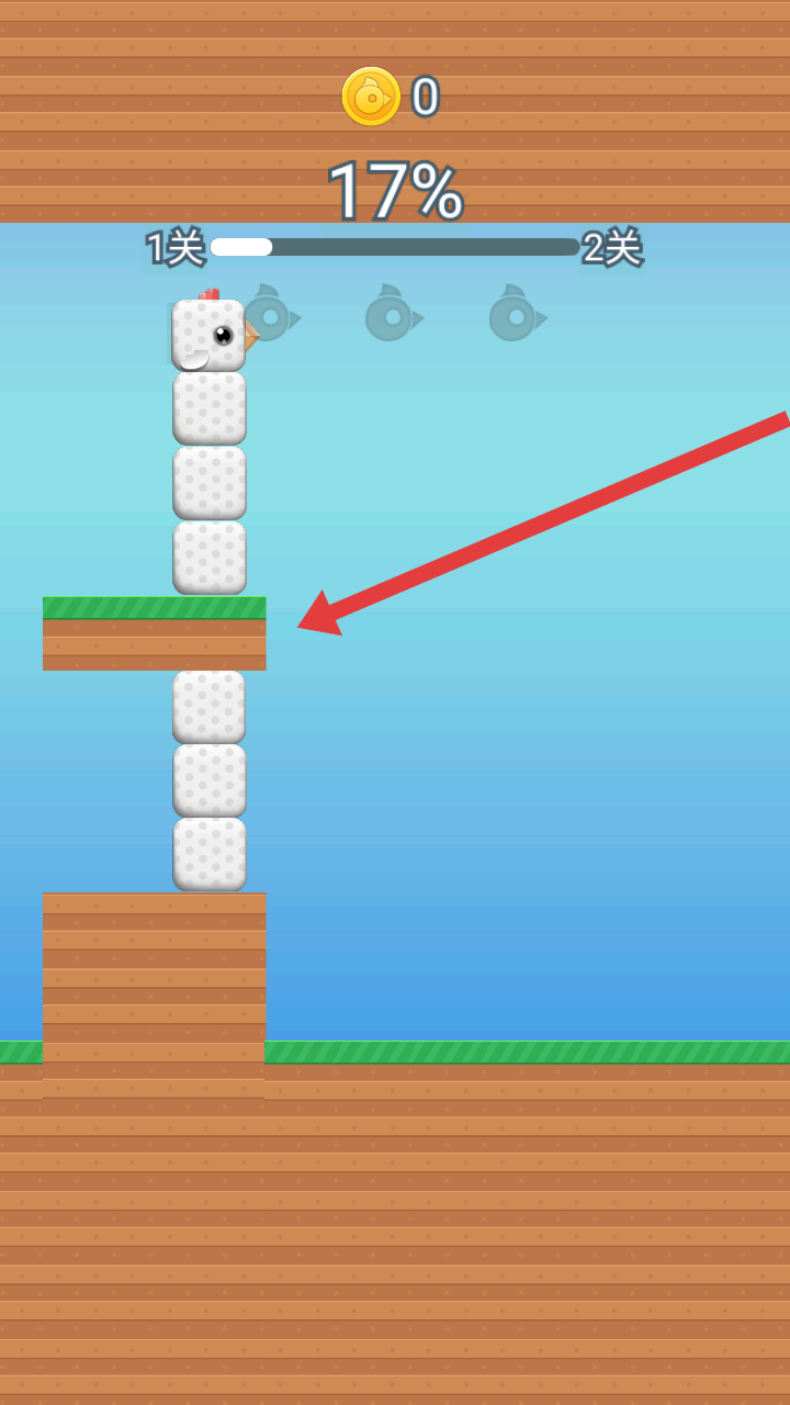 4、繼續前進,方塊小鳥到達綠色平臺目標位置,要成功抵達終點才可推進關卡進度,向完成第1關邁進。