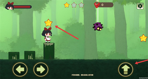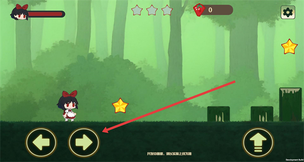 2、操控底部方向鍵左右移動角色探索森林,沿途收集星星,留意地面障礙與場景布局,保持移動節奏逐步推進,拓展關卡進度提升冒險效率。