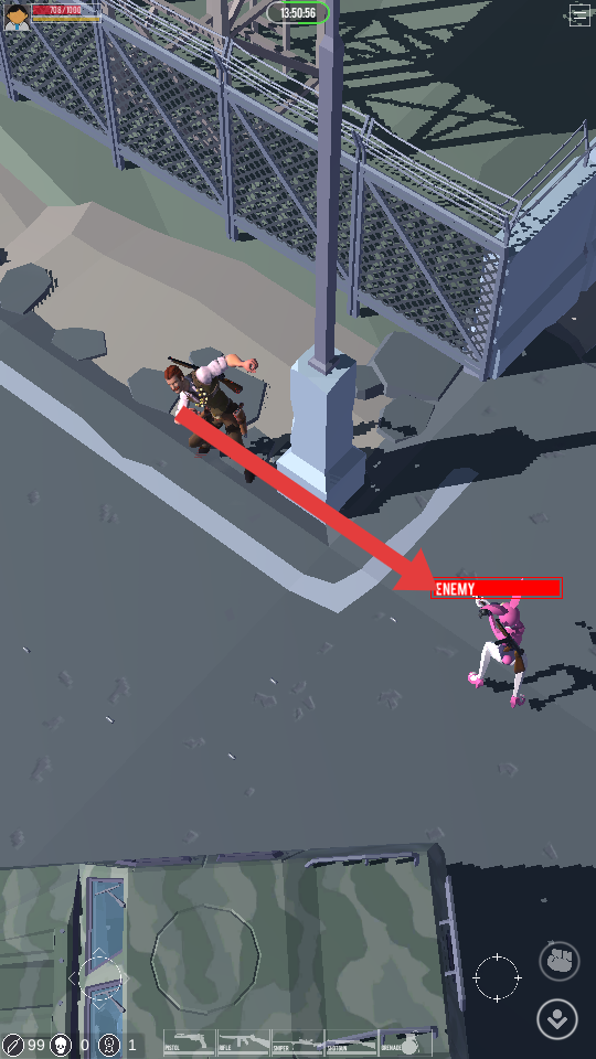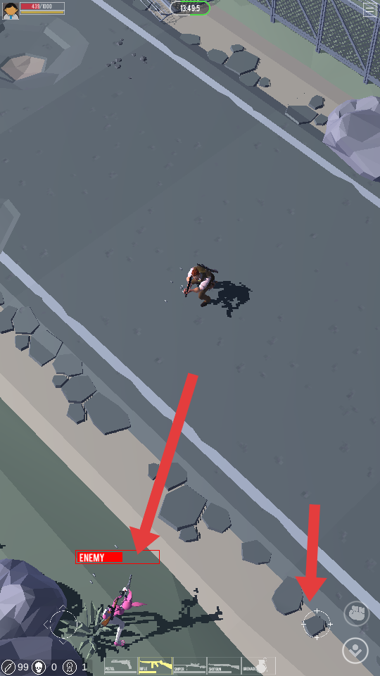 3、與敵人交戰時,注意自身血量變化,同時借助石塊等掩體,躲避敵人攻擊,抓住敵人暴露的間隙,使用武器進行反擊,擊敗敵人。