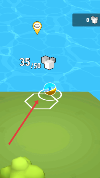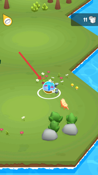 1、進入游戲,操控帶有透明罩的角色有花草、水域的場景中移動,靠近目標區域,開始收集小物品,為后續收集更大物品做準備。