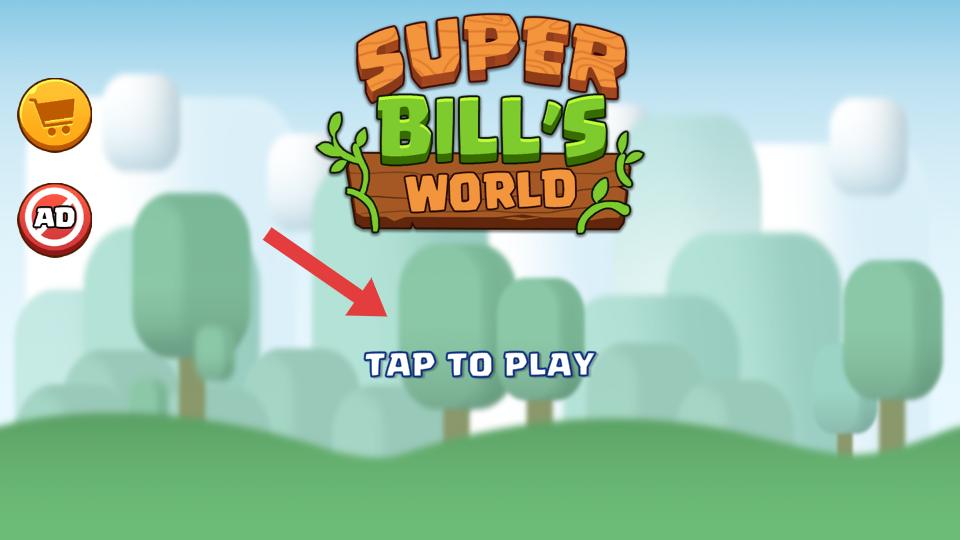 1、游戲初始界面有SUPER BILL IS WORLD標題,還有購物車,AD等圖標,點擊TAP TO PLAY,就能開啟游戲冒險。