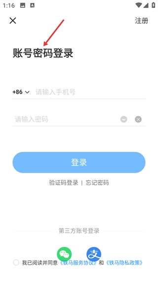 1、登錄頁面支持賬號密碼、驗證碼及第三方賬號登錄,需同意服務協議與隱私政策,是使用APP功能的前置驗證入口。