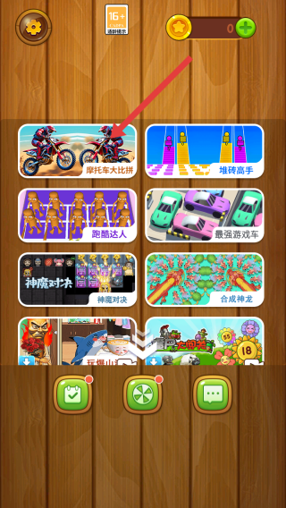 1、游戲選擇界面有許多選擇,找到摩托車大比拼選項并點擊,進入該游戲的準備環節。