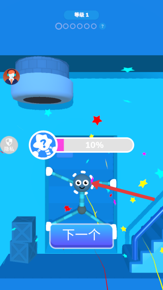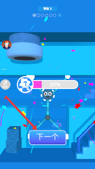 2、成功完成關卡任務后,會出現彩色星星等慶祝特效,同時能看到進度條,顯示關卡完成的進度情況。