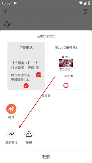 4、在資訊詳情頁面點擊分享按鈕,選擇復制鏈接選項,將該資訊的鏈接復制下來,以便后續分享給他人。