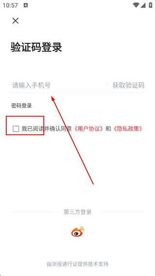 1、打開中國畬鄉軟件,進入驗證碼登錄頁面,勾選已閱讀并同意相關協議,輸入手機號后點擊獲取驗證碼,完成賬號登錄。