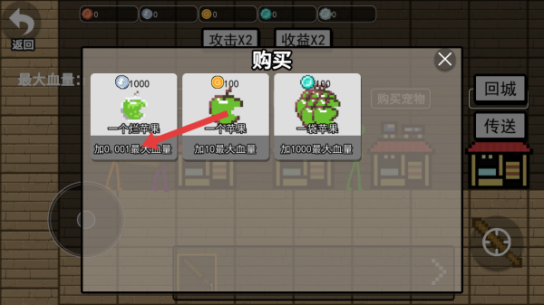 3、還有一個碧翠果、一個蘋果等道具可購買,這些道具能增加最大血量,助力火柴人更好地戰斗。