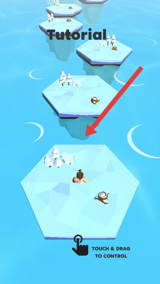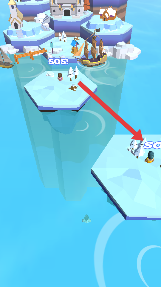 1、玩家下載游戲之后點擊進入,通過觸摸并拖動屏幕,操控角色在冰島上移動,躲避障礙物,前往目標地點。