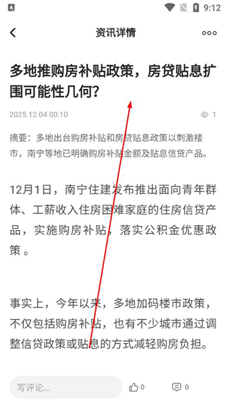 3、在資訊詳情頁閱讀政策的具體內容,了解購房補貼及房貸貼息的相關信息,瀏覽資訊的詳細解讀內容。